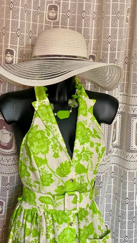 Il suo design con sbalzo verde valorizza la femminilità con naturalezza, offrendo comfort e versatilità. Ogni abito è un pezzo irripetibile, con dettagli che raccontano una storia di autenticità e gusto retrò.