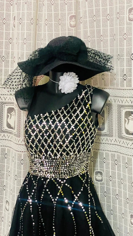 Abito Elegante Vintage Monospalla con Paillettes in Tulle