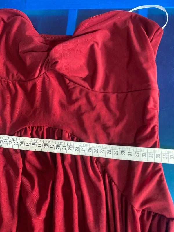 Long evening or formal dress in elastic burgundy with a sweetheart bodice design scarf stole that offers style and elegance
