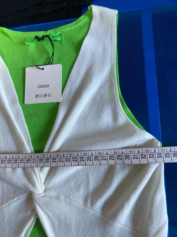 two-tone midi longuette dress with armhole neckline and cut-out detail at the waist