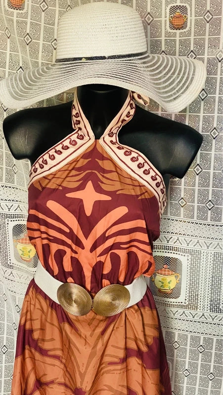 The Shein Curve dress in size 3XL accentuates femininity with a halterneck and a bold back that allows for an elegant bow on the open back. The bandeau top ensures a perfect fit, while the elasticated skirt ensures comfort and freedom of movement. A unique and distinctive piece, perfect for those who want to stand out with style and personality.