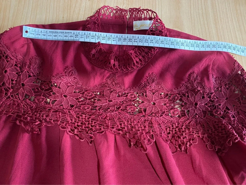Completo vintage raffinato che unisce eleganza bohemien e dettagli ricercati. La camicia Vinceotto in taglia M presenta maniche lunghe a peplo con polsini bottoncini e ricami in pizzo delicato al collo, petto e metà maniche. Abbinata alla gonna H&M elastica con fascia in vita che scende in voilant e chiusura con cerniera posteriore. Un ensemble versatile perfetto per chi ricerca pezzi unici con carattere e stile vintage consapevole.