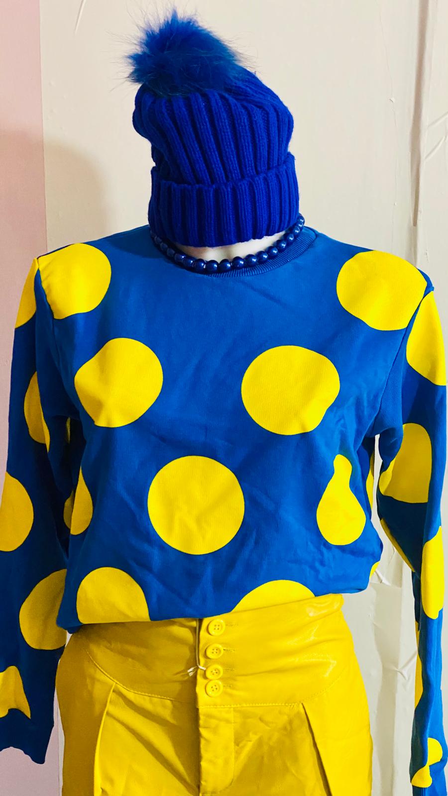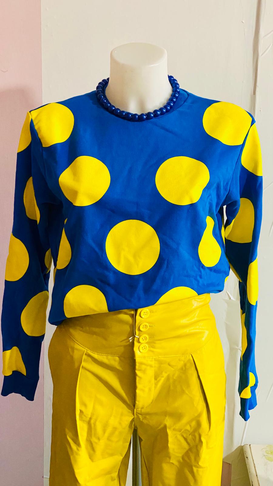 Completo affascinante che unisce stile retrò e sostenibilità. Il pantalone in ecopelle a vita alta Taglia M piccola nel caldo giallo scuro crea una silhouette elegante e slanciata, mentre la felpa a pois aggiunge un tocco di giocosità vintage. Perfetto per chi vuole osare con colori audaci mantenendo un'estetica consapevole. Un outfit versatile che passa dal giorno alla sera, ideale per chi ama il second hand con carattere e personalità