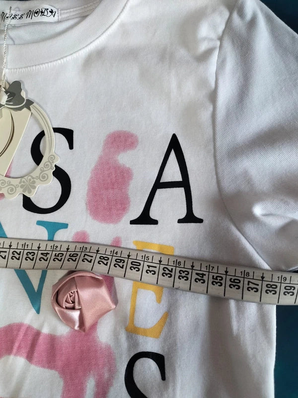 ๐๐ beautiful women's set with cotton t-shirt with 3D roses in satin effect Miss Moda One size ๐ธ๐ธ women's wide-leg trousers with lace effect One size fits all, can go up to a 46 Elastic waist Practical, casual and feminine outfit