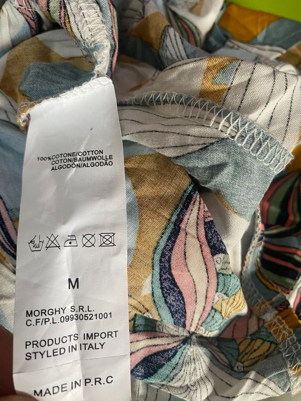Scopri il fascino senza tempo di questo completo vintage italiano che unisce eleganza e originalità. Il top in puro cotone presenta uno scollo quadrato drappeggiato al petto con fascia finale e elastico posteriore per una vestibilità perfetta. Il pantalone in cotone-viscosa-spandex sorprende con brillantini interni che catturano la luce e un orlo arricciato dal design fresco e contemporaneo. Versatile nella taglia grazie all'elastico in vita, si adatta perfettamente da una M/L. Un pezzo autentico Made in Italy che trasforma il tuo stile con quel tocco vintage irresistibile che solo i capi d'epoca sanno regalare