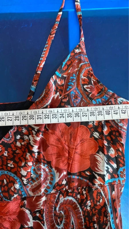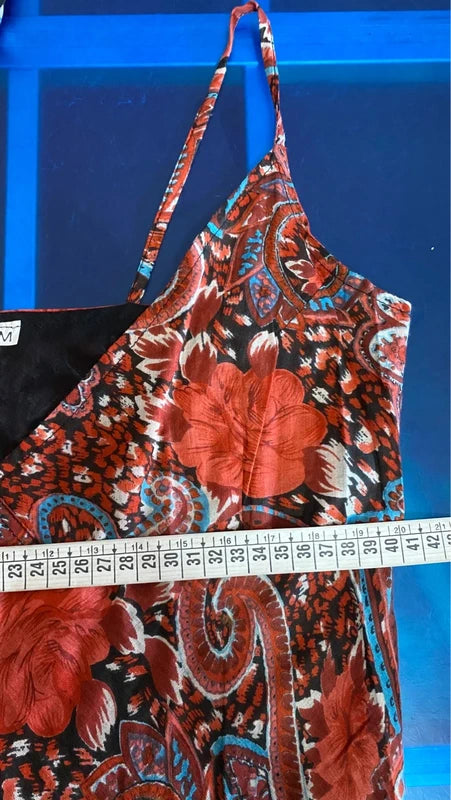 Indian Boho Chic outfit, perfect for those seeking a feminine and unique look. The V-neck midi dress creates an elegant silhouette, while the bolero shrug stands out for its eye-catching detail on the sleeves. Made of non-stretch fabric, it ensures a natural and refined fit. Detailed measurements are available in the photos. A rare, one-of-a-kind outfit, perfect for those who love authenticity and distinctive style.