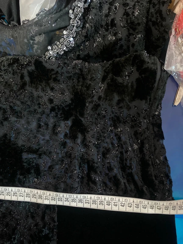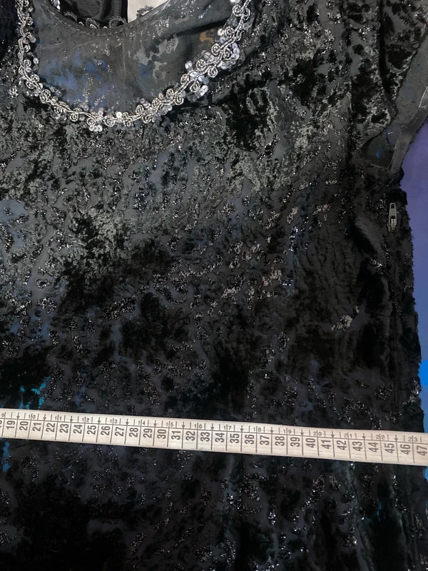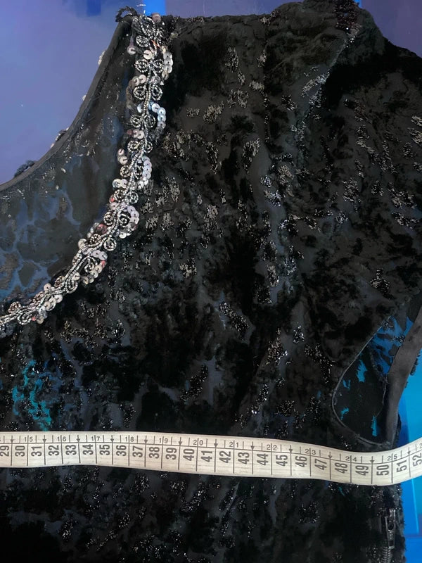 Favoloso Abito Vintage anni ‘80 con schizzi di velluto astratti e Paillettes Misure Nelle Foto