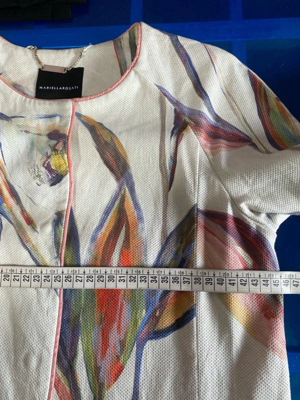 Vintage floral pattern dress coat blazer Usable pockets 3/4 sleeves Pink edges Clip buttons Great for this season Vintage Outfit Refined elegant dressing with a touch of femininity.