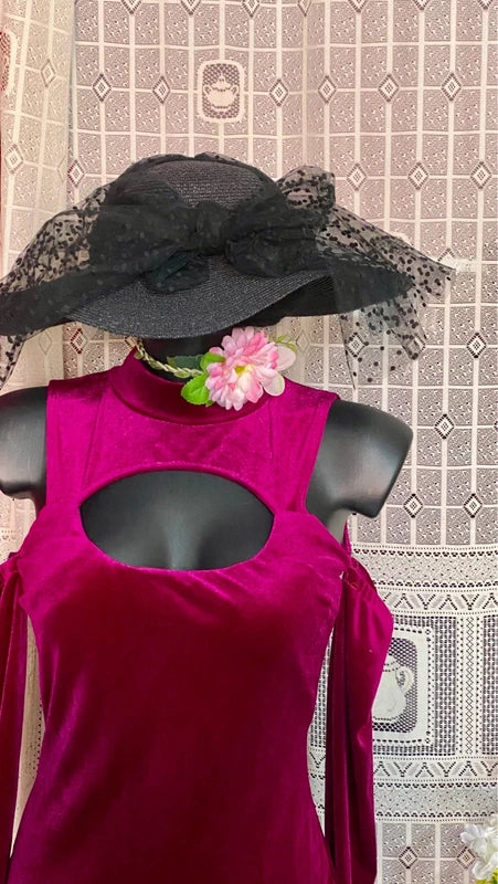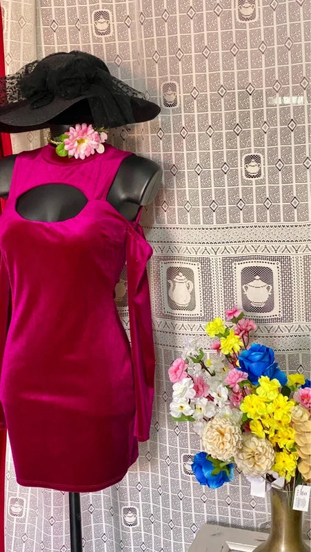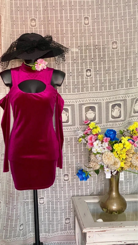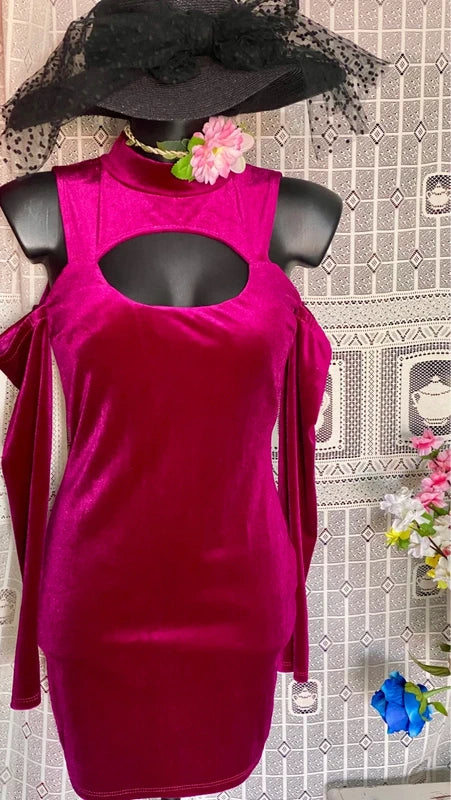 Questo tubino in velluto fucsia scuro elastico è il capo che stavi cercando per elevare il tuo stile. Le coppe interne modellanti offrono una vestibilità impeccabile, mentre il taglio a oblò sul petto aggiunge un tocco di originalità che cattura lo sguardo. Le maniche lunghe in velluto morbido e lussuoso creano una silhouette elegante e moderna, perfetta per chi non scende a compromessi con la qualità. Indossalo a cene raffinate, serate speciali o eventi importanti: questo abito trasforma ogni momento in un'occasione memorabile, regalandoti la sicurezza di chi sa di essere impeccabile