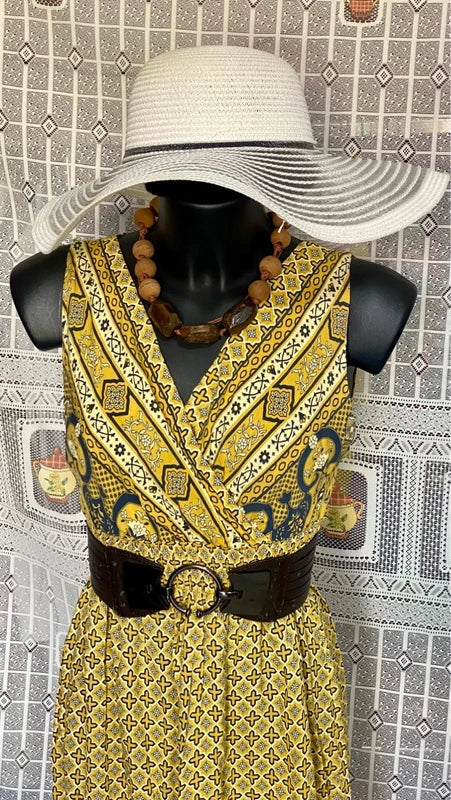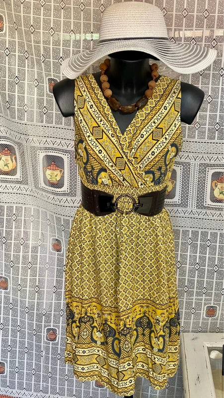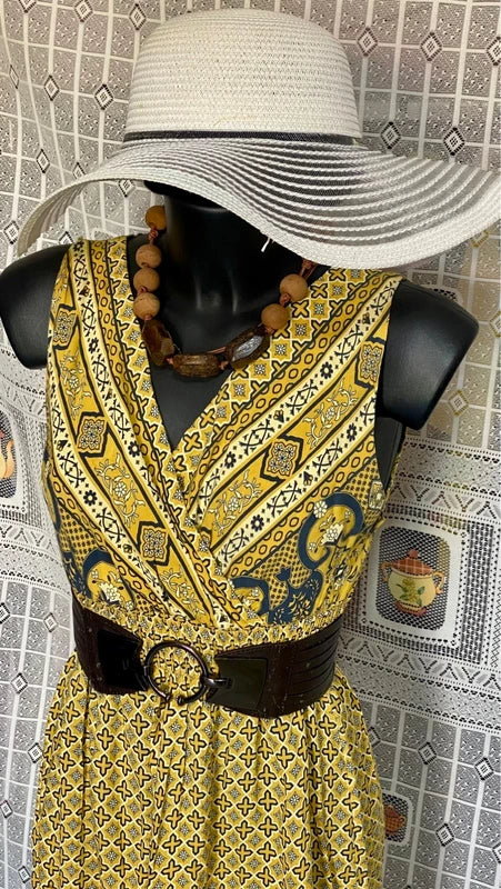 Scopri l'eleganza senza tempo di questo abito donna longuette vintage, caratterizzato da un raffinato giromanica e uno scollo a V che valorizza anche la schiena. La vita elastica assicura una vestibilità comoda e avvolgente, perfetta per enfatizzare la tua silhouette con stile e femminilità. Un capo versatile che unisce fascino retrò e comfort moderno, ideale per ogni occasione in cui vuoi distinguerti con classe