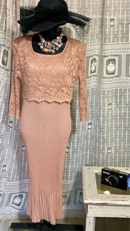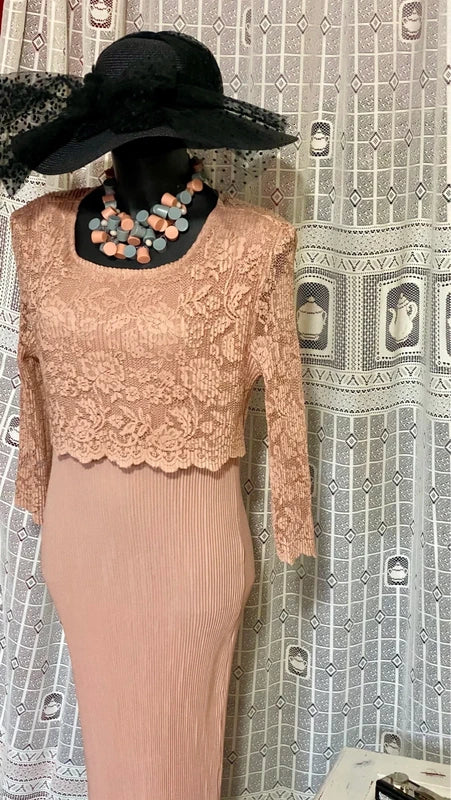 Questo abito incantevole in pizzo plissettato unisce eleganza e raffinatezza. Il delicato pizzo valorizza ogni dettaglio, mentre la plissettatura aggiunge movimento e leggerezza al capo. Perfetto per occasioni speciali, offre una silhouette femminile e sofisticata, ideale per chi cerca un look senza tempo e di classe.