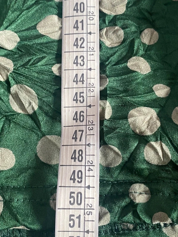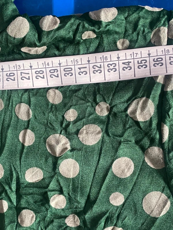 Dolcevita elegante a pois con elastico in vita, perfetto per chi ama uno stile sofisticato e versatile. Disponibile in taglia unica dalla S alla L, si adatta a diverse silhouette mantenendo una vestibilità impeccabile. Abbinato a una gonna con volant a palloncino Patou in taglia M, tonalità fango/beige che dialoga armoniosamente con il motivo a pois. Un ensemble curato nei dettagli che cattura l'essenza del vintage bohémien, ideale per chi ricerca pezzi unici e raffinati che raccontano una storia di eleganza senza tempo