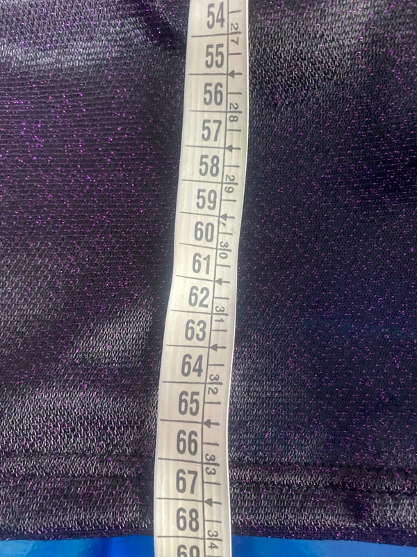 Gonna tubino longuette glitterata in viola trasparente con spacco posteriore, abbinata a un affascinante top in lanetta con spalline modellanti e elastico in vita. L'insieme cattura l'eleganza bohemien con un tocco di brillantezza, perfetto per serate speciali e occasioni che richiedono stile sofisticato. In ottime condizioni, il set rappresenta un'opportunità rara di vintage curato. Bonus esclusivo: cappello in feltro nuovo (misure 57/58 cm) incluso nel regalo, completando il look con un dettaglio vintage autentico e versatile