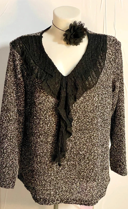 Gonna lunga in pizzo e tulle con elastico in vita a cascata, perfetta da XS a L per una silhouette fluida e romantica. Abbinata a un elegante top a manica lunga in lanetta con scollo a V pendente in pizzo, ideale anche per taglie curvy. Il set arriva nuovo senza etichetta, completo di cappello in omaggio e cintura in ecopelle coordinata. Un ensemble bohemien vintage che cattura l'essenza del fascino retrò con dettagli delicati e versatilità di taglie per ogni donna