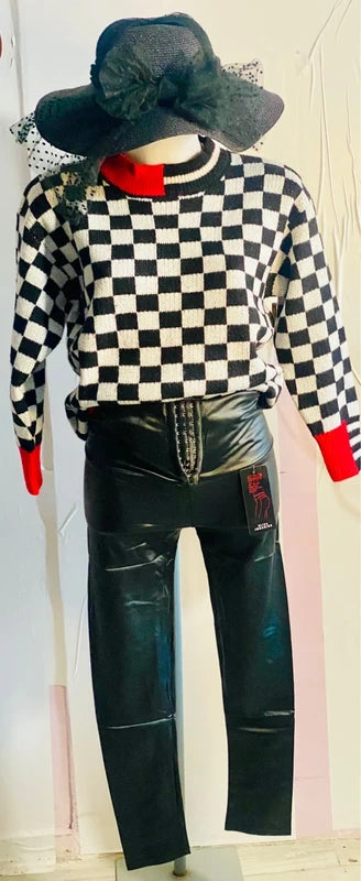 Scopri il perfetto abbinamento bohemian: un maglione oversize in viscosa con affascinante pattern a blocchi scacchisti e dettagli rossi che catturano lo sguardo, ideale per la taglia S/M con vestibilità generosa. Abbinalo ai leggins a vita alta slim fit in ecopelle, che allungano la silhouette e regalano un tocco di eleganza contemporanea. Perfetti per chi desidera uno stile sofisticato senza rinunciare al comfort. Questo duo versatile trasforma ogni look in un'affermazione di stile vintage con un twist moderno. Disponibili nelle misure indicate in foto