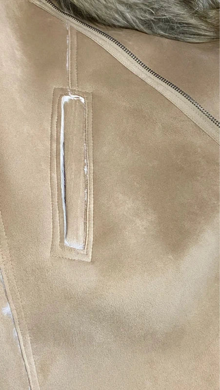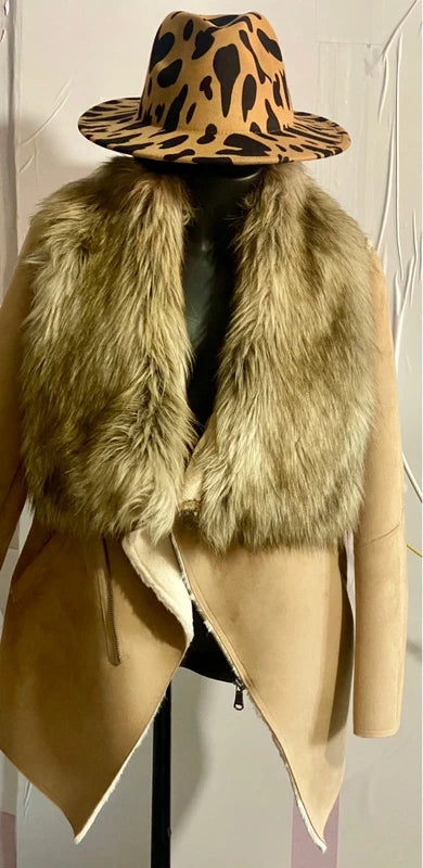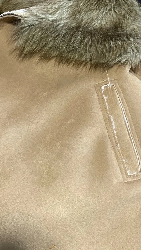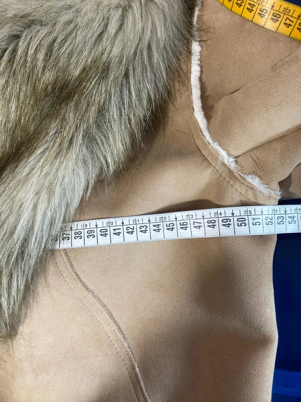 Montone cappotto in shearling con collo in pelliccia sintetica fissa Cappello In Regalo Misure in Foto